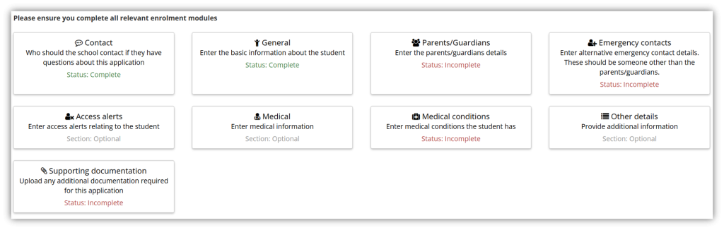 Each school can customise enrolment questions and document requirements to suit their needs.