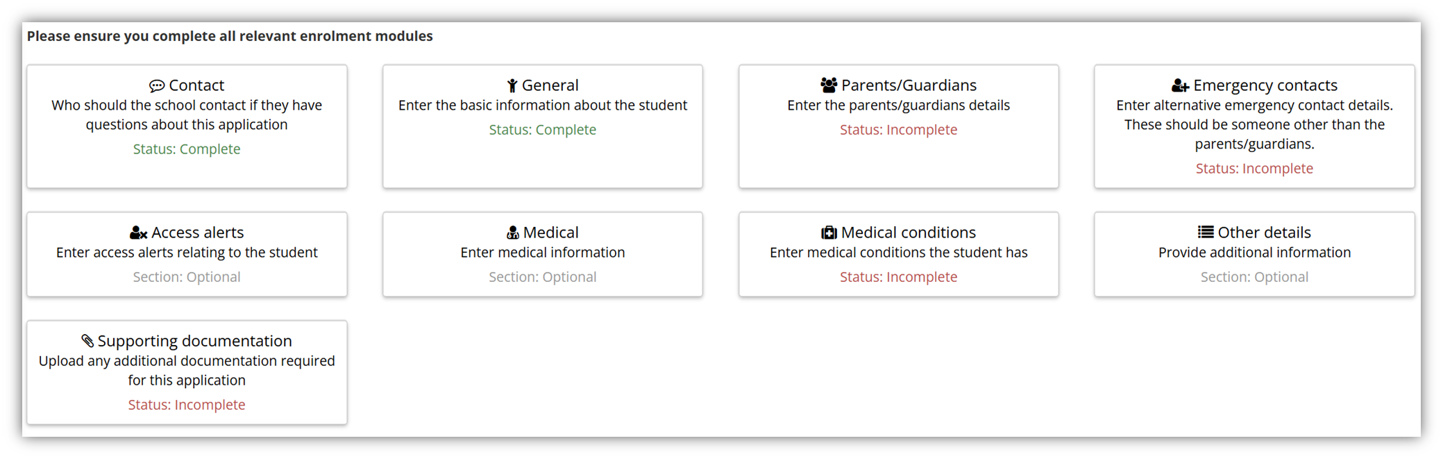 Families can upload supporting documents such as birth certificates, identification, medical details, court orders and additional information required by your school. This keeps all documentation organised and compliant.
