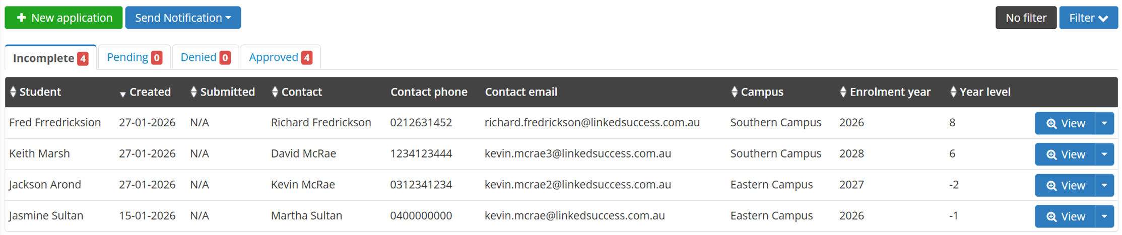 Administrators can review applications, request clarification, approve enrolments or move applicants to the next stage. Each step is tracked for clarity and record keeping.
