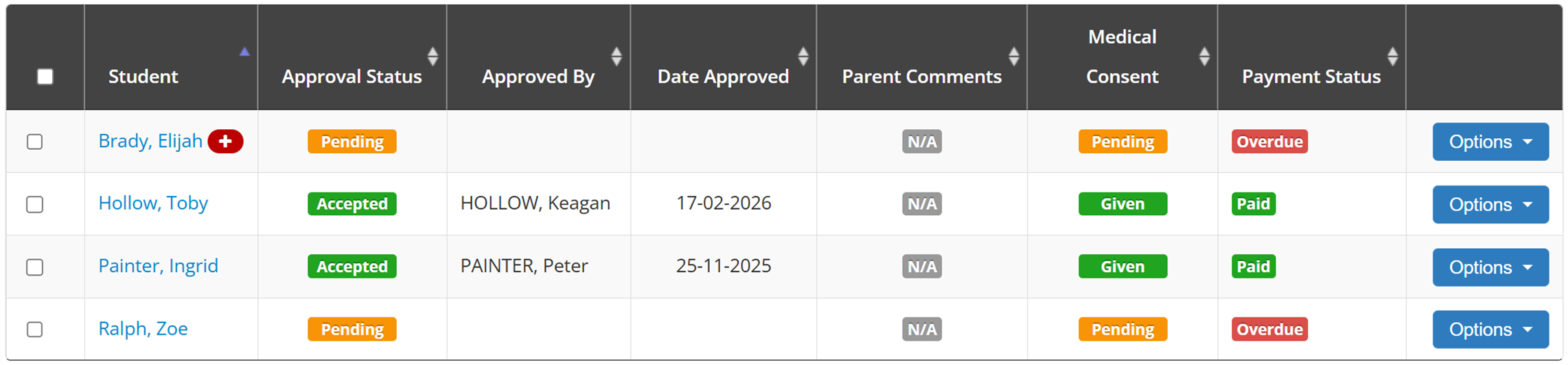 As permissions update in real time, staff always have an accurate list of which students can attend an event. This removes uncertainty and reduces day-of confusion.