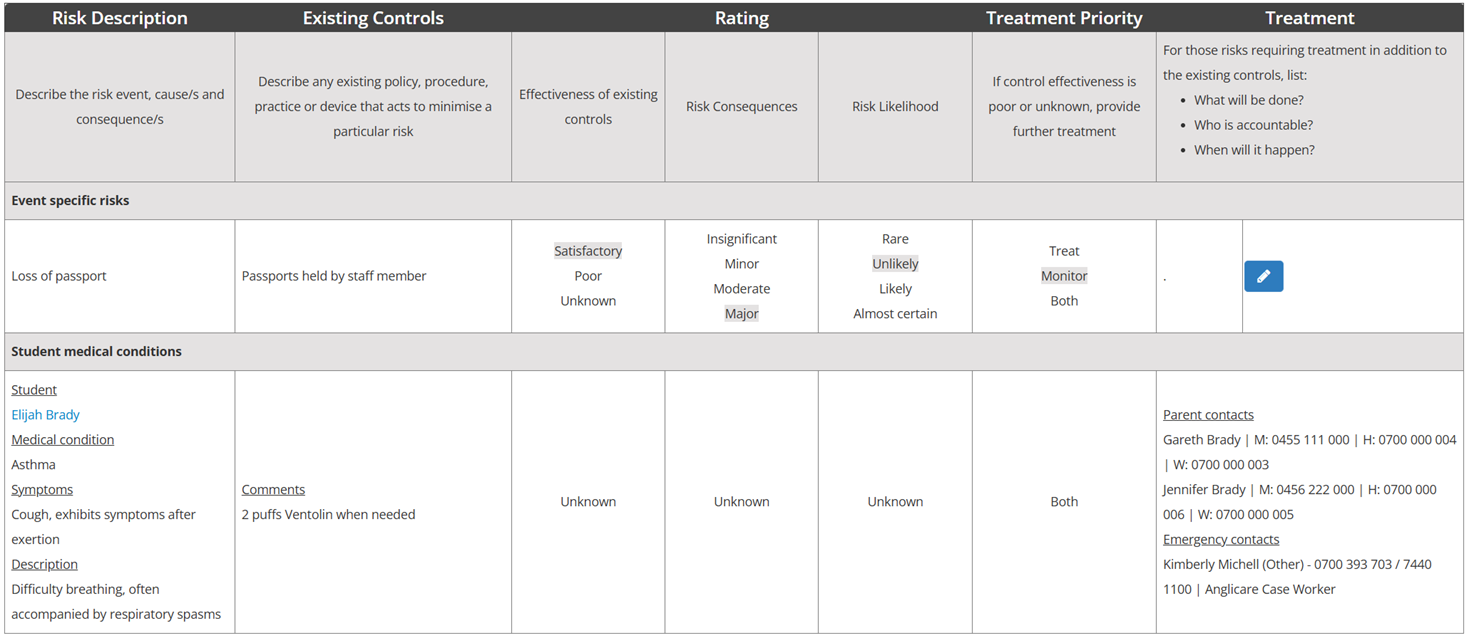 Teachers can access student medical information, emergency contacts, allergies, care plans and alerts during excursions. This supports student safety and allows staff to respond appropriately.